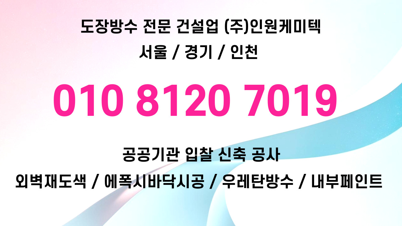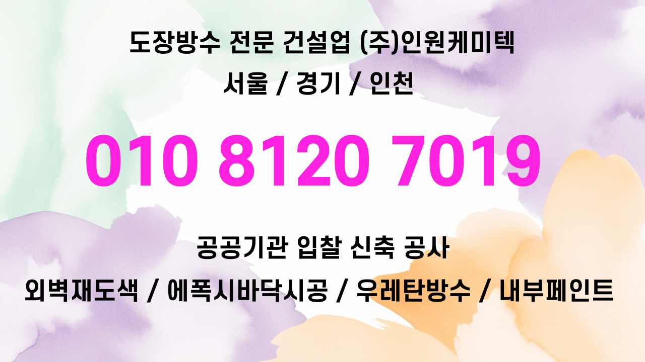 안녕하세요. 서울과 경기, 인천 수도권 중심으로 도장공사와 방수공사를 전문적으로 진행하는 (주)인원케미텍입니다.