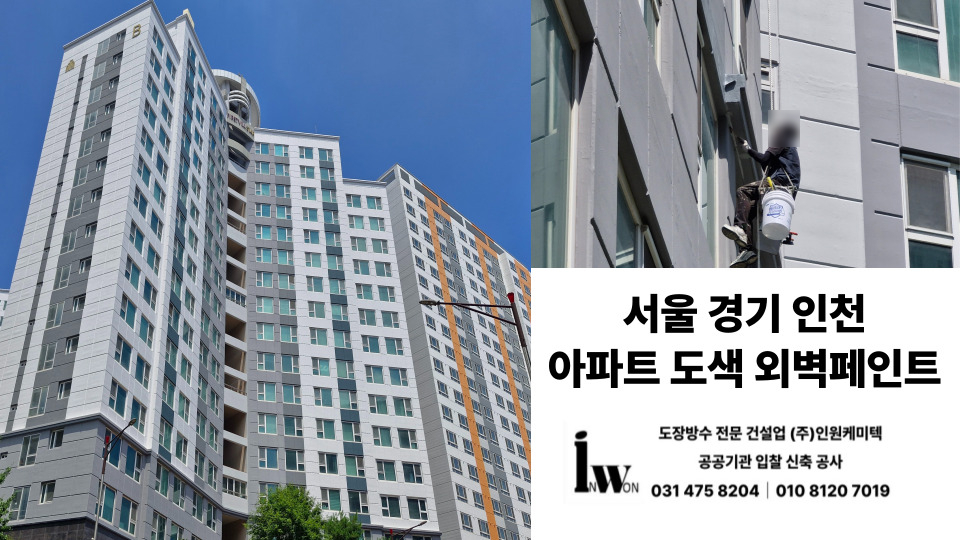 ㈜인원케미텍은 서울 경기 인천 수도권에서 수도권에서 아파트 외벽 도색 , 외벽페인트, 우레탄 방수, 폴리우레아 방수, 내부퍼티와 내부페인트, 에폭시시공, 에폭시라이닝, 에폭시 엠보 등 다양한 공정을 지역별로 전문적으로 도장 방수 공사를 수행해오며 맞춤형 도장 공사 솔루션을 제공합니다.