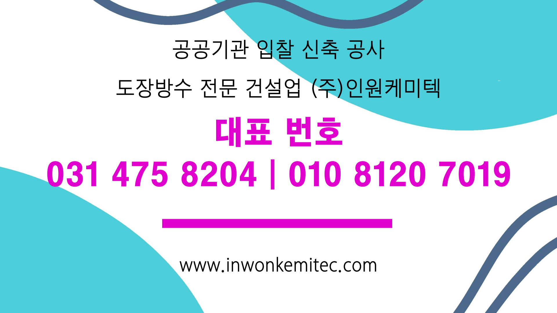 안녕하세요. 건축물의 외벽부터 옥상, 내부 공간까지 꼼꼼하게 책임지는 ㈜인원케미텍입니다.
