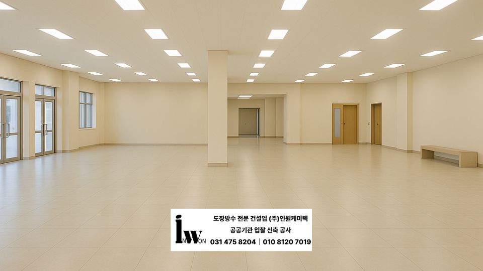 ㈜인원케미텍은 서울·경기·인천 수도권 전역에서 시청, 경찰서, 세무서, 문화예술회관, 학교, 복지관 등 다양한 공공기관에서 도장과 방수 전문 시공을 수행하고 있습니다. 30년 이상 시공 경험을 가진 기술 인력이 현장을 관리하며, 각 공간의 용도와 구조에 맞는 맞춤형 솔루션을 제공합니다.